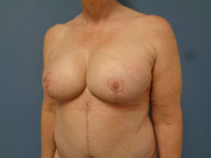 Patient BK294378: 52 year old mother of two who underwent breast lift with implant exchange of Memory Shape TH/MPP 350cc implants and a tummy tuck